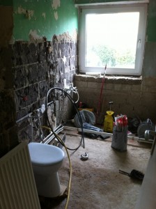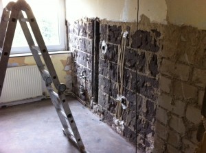 Einzelne Wohnungen sollen von Grund auf saniert werden. Elektrik und Sanitärleitungen sind noch aus der Bauzeit um 1968 und damit seit langem nicht mehr zeitgemäß. Hier also ein paar Schnappschüsse von der ersten Wohnungssanierung: