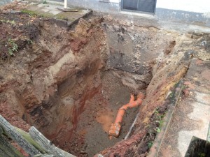 - Zusammenschluss von Regenrohren und Abwasser vor dem Haus