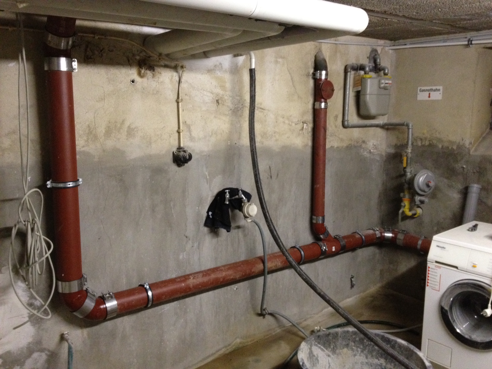 Um dem ganzen noch die Spitze aufzusetzen entwässern die Abwasserleitungen aus den Wohnungen auch in genau in diesen einen Abfluss. Da unser Haus so ziemlich der niedrigste Punkt für das Kanalsystem der umliegenden Bebauung ist, sind wir also als erstes von möglichen Rückstaus bei kräftigen Niederschlägen betroffen. Aber selbst der Einbau einer Rückstauklappe im Haus löst im Status quo nicht das komplette Problem, da die Entwässerung des Regenwassers ja eben auch genau durch diese Rückstauklappe führt. Schließt sich diese also, so staut sich vor der Klappe im Haus Wasser und erste Opfer sind die vorhandenen beiden Bodenabflüsse.